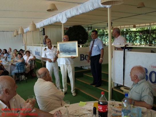 Membrii ai Ligii Navale Romane in cadrul mesei festive organizate cu prilejul festivitatilor de Ziua Marinei 2011. In cadrul evenimentului a fost donat un tablou cu tema de marina restaurantului Marinarul din parcul Herastrau .