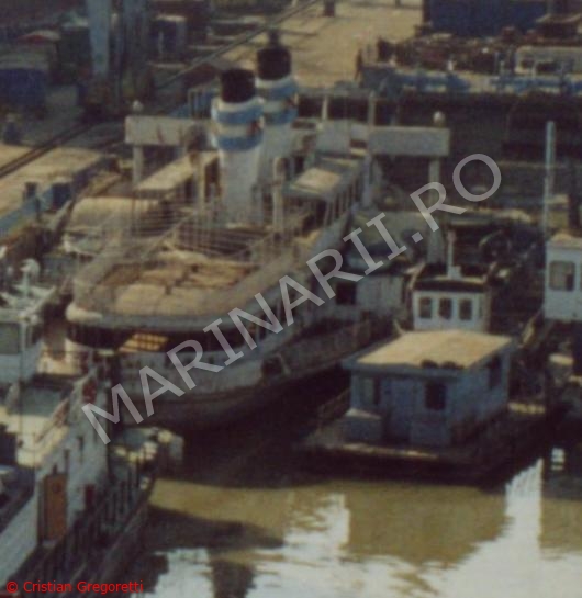 Februarie 2002 - inceperea operatiunilor de restaurare/modernizare in S.N. Damen Galati.Dupa cum se poate observa, cabina de comanda precum si multe alte elemente (ferestrele, etc) au fost demontate.